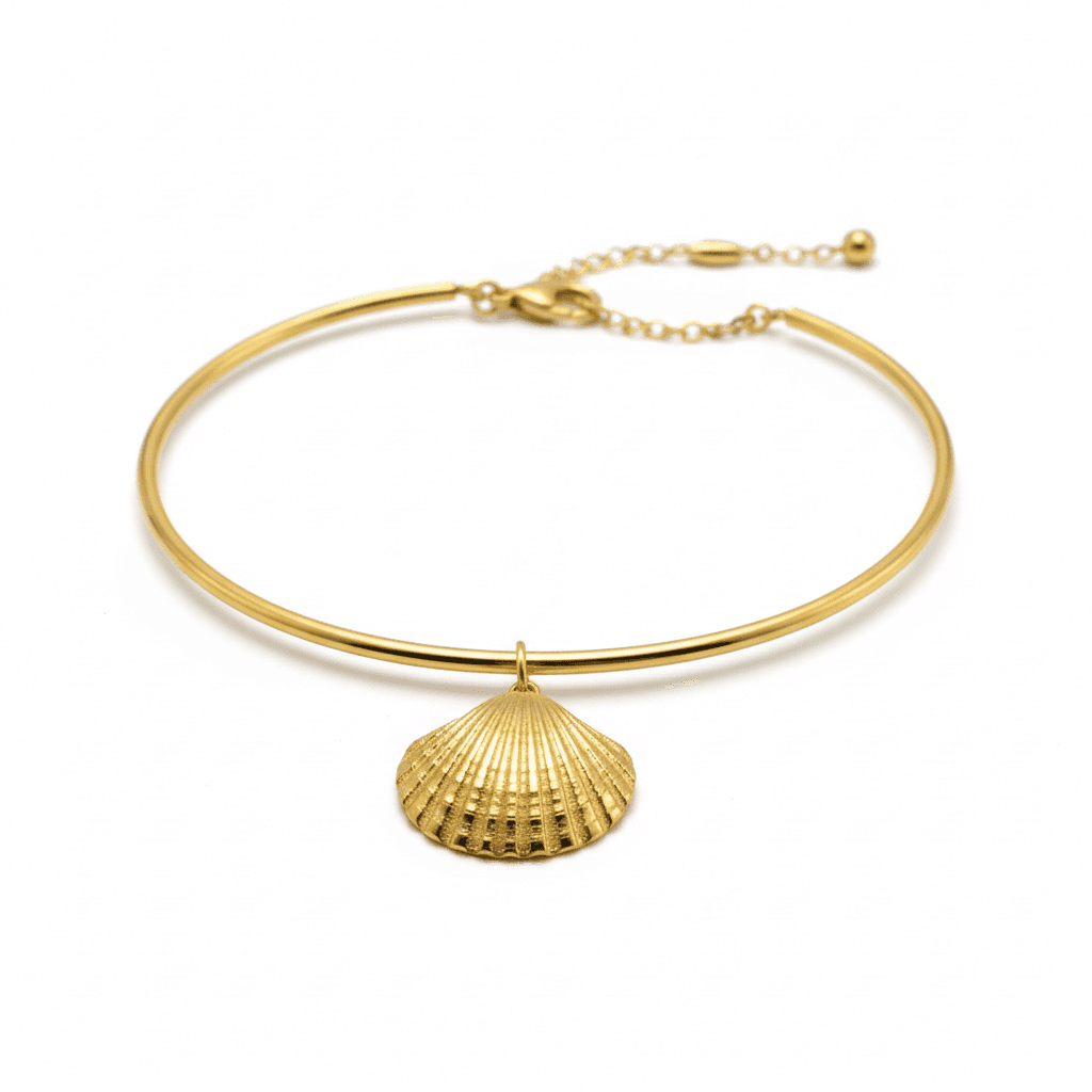 With its classic ribbed texture and radiant golden finish, this charm beautifully reflects the light, evoking images of sun-drenched beaches and tranquil seaside strolls.